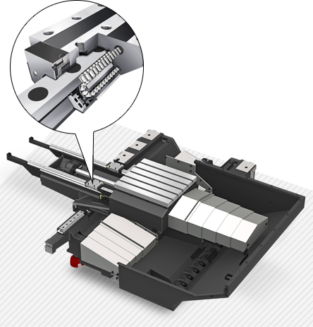Linearne valjkaste vođice se primenjuju kako bi se smanjilo vreme nerezanja i donela visoka krutost. Svaka osa je direktno povezana sa visoko pouzdanim digitalnim servo motorom kako bi se obezbedila visoka krutost i minimalno toplotno pomeranje.