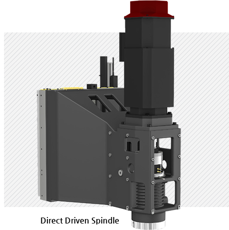 Direktno povezano vreteno sa maksimalnim brojem obrtaja od 15.000 rpm omogućava visok brzi proces. Dodatno, veliki prečnik i debljina vretena doprinose stabilnosti mašine.