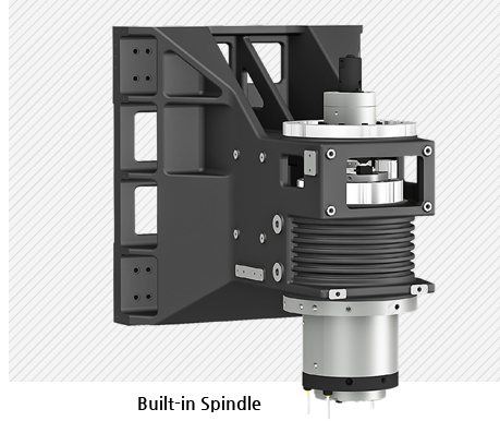 Ugrađeno vreteno sa brzinom od 20.000 rpm minimizira vibracije koje se prenose na vreteno. Omogućava odlične performanse obrade u proizvodnji kalupa i visokopreciznih proizvoda.